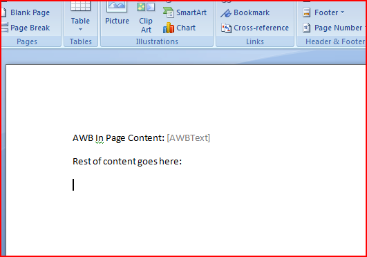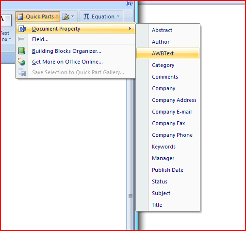 I then created a new document. Note that the AWBText field in the Document Information Panel and the Quick part is linked – I typed in the value in the document and it was reflecting the Document Information Panel.