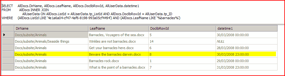 This is correct. SharePoint actually holds dates as DateTime columns, with the time portion set to zero hundred hours (0:00:00). During the summer time, the UK is on GMT+1, whereas SharePoint always just uses UTC (which for all practical purposes in SharePoint is the same as GMT). Thus, to correct for summer time, our date ( 2008-05-08 0:00:00 ) gets clocked back an hour to UTC time ( 2008-05-07 23:00 ). You can see this happening for the first day of British Summer Time on the line highlighted in yellow.