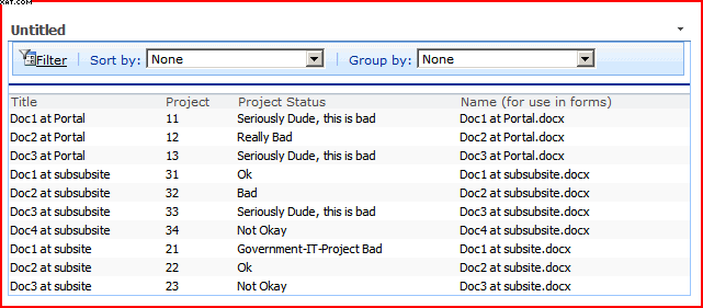 Here’s an example of a Data View Web Part showing the same data as our examples from the Content Query Web Part