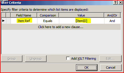 Well, okay, so we have a DataView web part – how do we decide what to show? Looking in the URL for showing an item’s properties, I noticed the ID query string parameter: