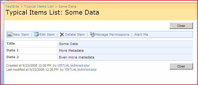 SharePoint is made up of lists of items, where an item is a set of data. Here is the standard display of an item’s properties: