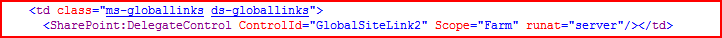 Our customer wanted to remove the ‘Help’ and ‘My sites’ links from the Global Links in the top right of the page (the Mysite link is going elsewhere on the page), so I removed these items from my new master page. I ended up with something like this: