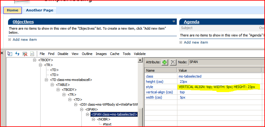 So the inline CSS is actually generated by a WebPart?! What fool wrote this? Well, clearly someone who figured that nobody would ever want tabs that weren’t exactly 23 pixels high. I mean, using an inline, hard coded CSS class would be poor, but I could live with. But inline styles themselves? Idiots!