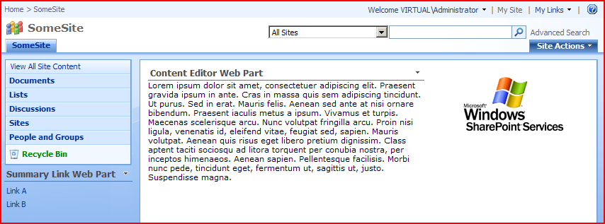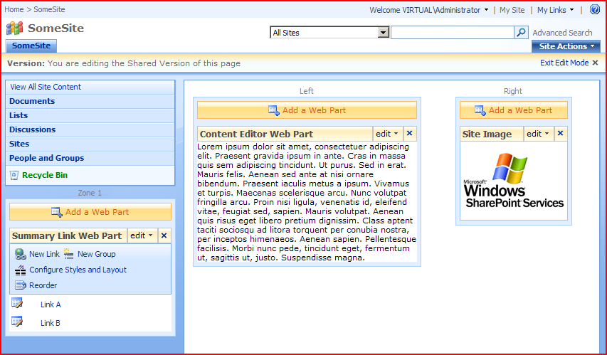Great! I can drop in web parts – here I’ve used a summary links web part: