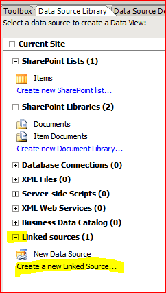 I clicked to create a new Linked Data Source and was presented with this dialog: