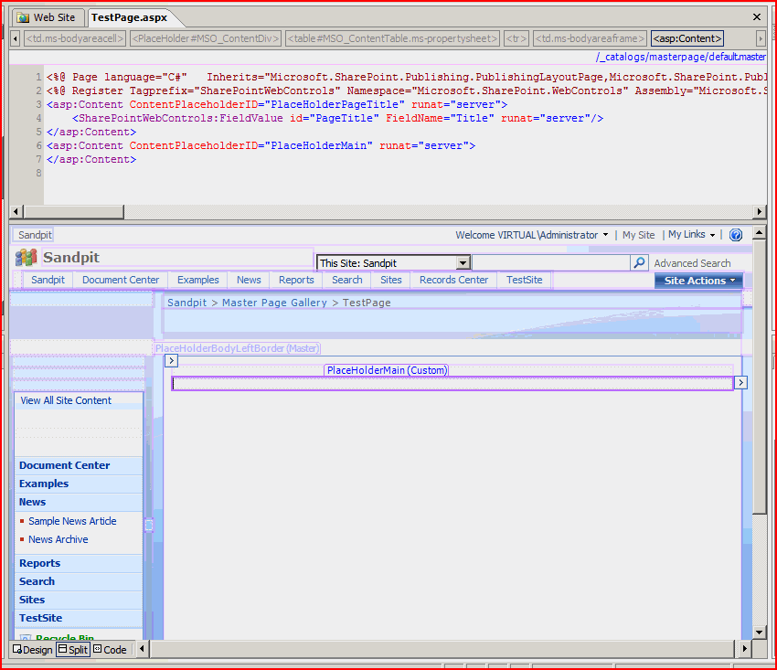 So, how do I fix that? Well, go back to SharePoint Designer (you just created the page layout with it, right?) Let’s look at the code: