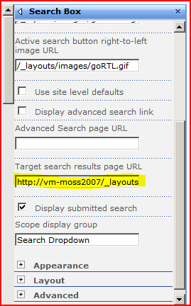 Well, the Search Box Web Part has ‘Additional Query Terms’. These can be appended to our query. So, if we set this, and check the check box: