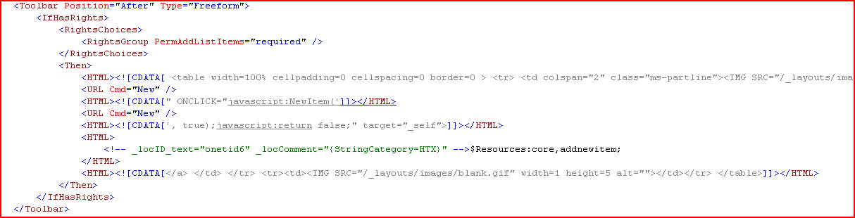 Well, both these ListViews use Views defined in our List Definition. It turns that the Views themselves define the toolbar for the ListView Web Part