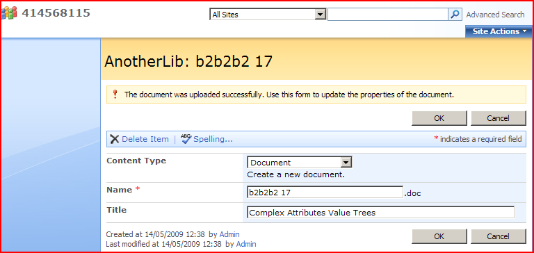 There are two forms involved – Upload.aspx, and EditForm.aspx.