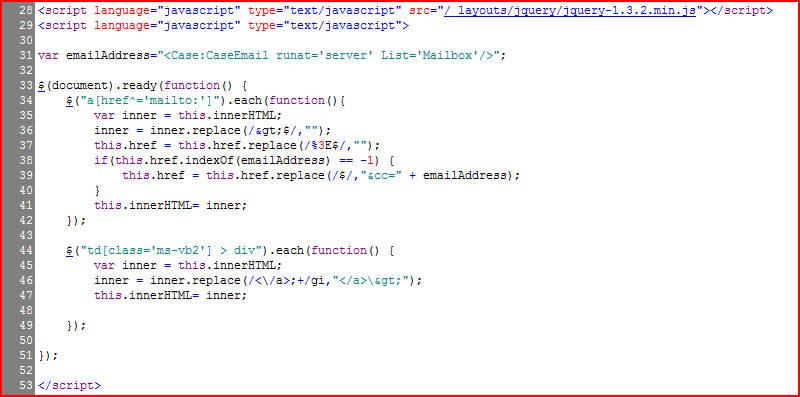 We also had our own peculiar requirement – we wanted the Mailtos to CC the case itself. That’s right, click on someone here to send an email, and end up CC the original list! It’s to try and capture more of the email conversation.