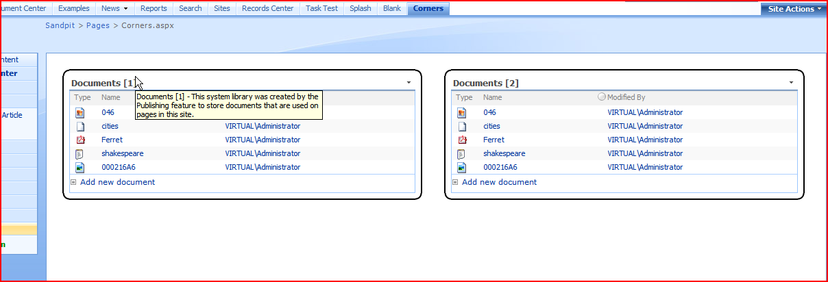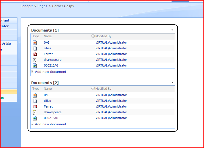 Anyway, one design requirement that come up repeatedly is rounded borders on Web Parts. I swear, it comes up with every design – and it isn’t possible (although I have an idea – more on that tomorrow). What you can do, though, is have a rounded border about the entire web part zone…