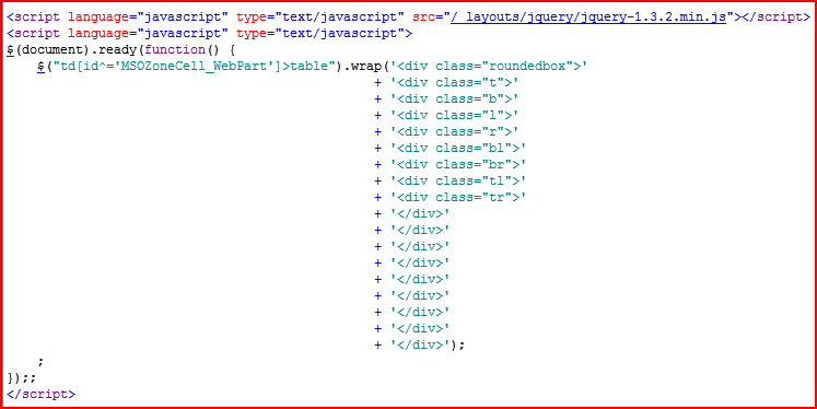 However, as far as I know nobody has yet figured out a way of putting rounded corners on the bottom corners of web parts. The HTML they have does not suit them to do this via CSS. The only idea I’ve had previously was to use ControlAdapters to modify the output of of the Web Part itself. And I’m pretty sure you’d have to write an adapter per web parts. That kind of sucks; no customer is going to be in a hurry to pay for that.