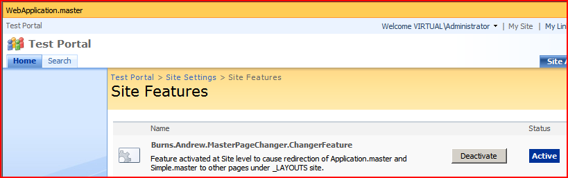 What we really need, I thought, is some way of just turning on/off the master pages being used with Features. And that’s what I’ve built. Check it out here…
