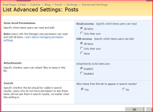 That’s weird. I mean, the item clearly DOES have a content type at some level – there is an SPBuiltInContentTypeId.BlogPost value. However, SharePoint Manager doesn’t show it, my code reports it as NULL, and I can’t find any references to this anywhere! And the Advanced Settings page for a Blog’s “Posts” list doesn’t have an option “Allow Management of Content Types”.
