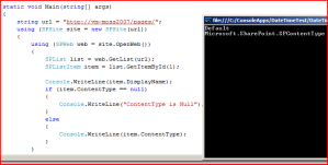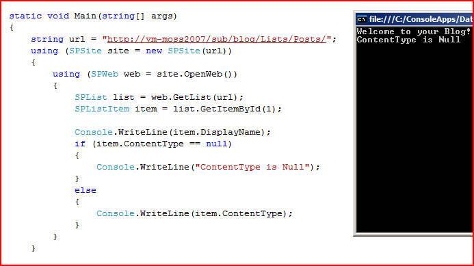 I’m trying to do something with various types of item, including Blog Posts, in SharePoint. Naturally, I’m getting the SPListItem for them, and then the SPListItem.ContentType, so I can check what kind of item is it. The weird thing is, if I try to get a Blog Post, the SPListItem.ContentType is NULL.