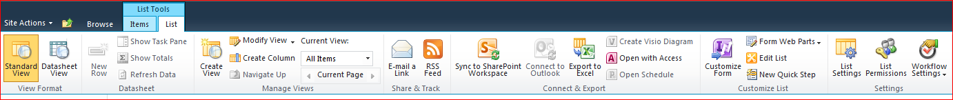I have a custom list definition that I’ve been writing. The ribbon on it looks something like this: