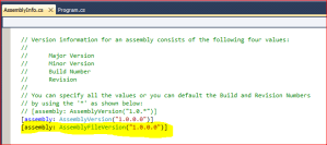 - Remove the AssemblyFileVersion attribute from the AssemblyInfo.cs file: