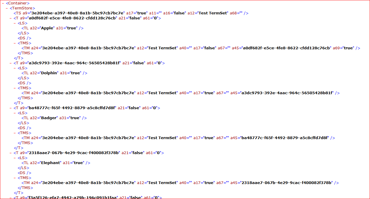 string result = _wssTax.GetTermSets(termStoreIds, termSetIds, 1033, clientTimestamps, clientVersion, out serverTermSetTimestampXml);