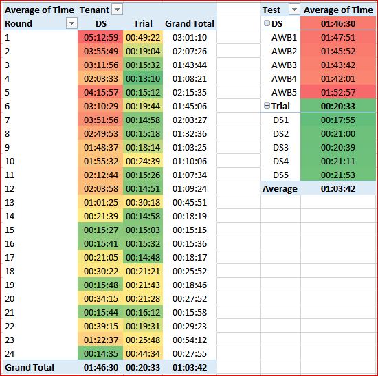 So, similar results to last time. The trial tenant was a little slower, but this was probably an artefact of the slower sampling rate used in this experiment.