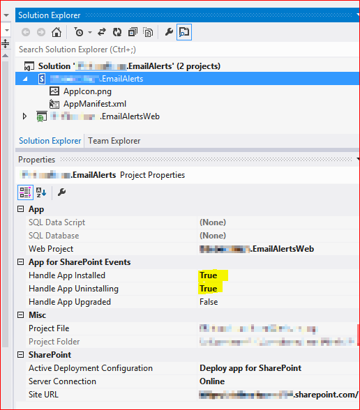 I’m creating a Provider-hosted app, and I want to do some things when the app is installed/uninstalled. It isn’t immediately obvious how you set that up in VS2012. You set this up in your Visual Studio solution by clicking on the App project, and then looking in the properties of the project: