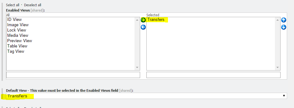 The View item has a Name, and a Display Name. For example, here the item has a name ‘Transfers’ and a display name ‘Transfers View’:
