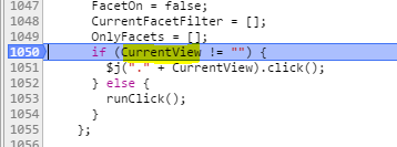 Right, well, why don’t I make both of them “Transfer View“? Well, notice that the display name comes through with spaces removed. CurrentView does not – it comes through as ‘Transfer View‘. Thus line 1051 fails to find the .click() method – and the thing fails again.