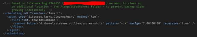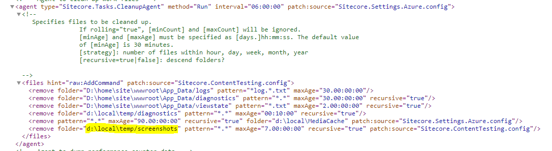 So that’s how the /site/wwwroot/temp/screenshot folder is specified to store screenshots. However, shouldn’t the CleanupAgent be clearing this? Again, I checked showconfig.aspx on the CM server: