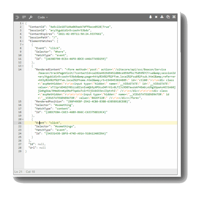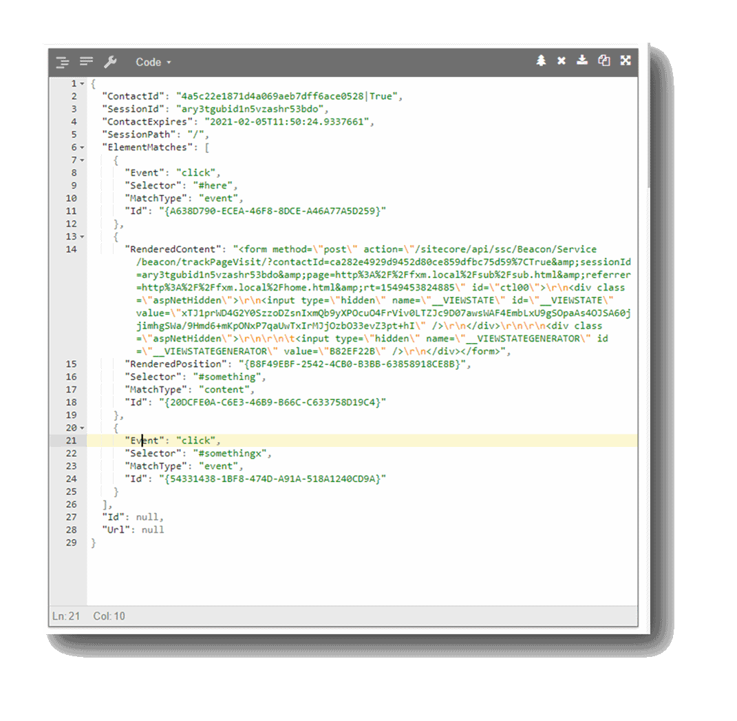 And the response to that sets up a Sitecore Session ID, Contact ID, and returns element matches, which are stored in Cookies: