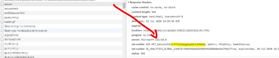 A simple test was to, in a browser, check the ASP.NET_SessionId cookie before and after a 3D-secure payment. Here’s before…