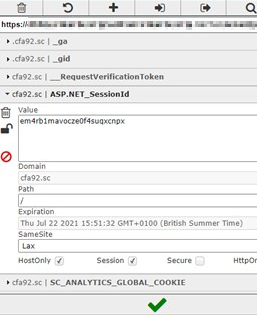 - The ASP.NET_SessionId can be configured to have a default SameSite value of “None”. However, that doesn’t fix the SC_GLOBAL_ANALYTICS_COOKIE.