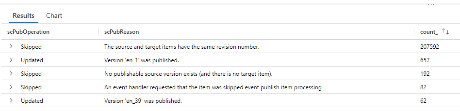 The problem was, I wanted to summarize details about these publishes, but the details are all part of one big string. Specifically, I wanted to see the count of the operation, and the reason for that operation. I was expecting to have to do some big regex to figure it out.