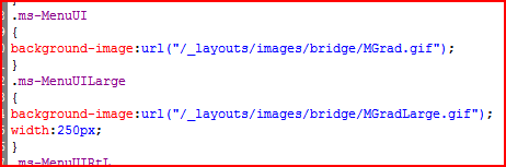 Well, I realised that I’d have to trawl through the CSS searching for a likely looking class. I tried Core.css and found the ms-MenuUI and ms-MenuUILarge classes (also defined in the in the Menu.css file, for some reason).