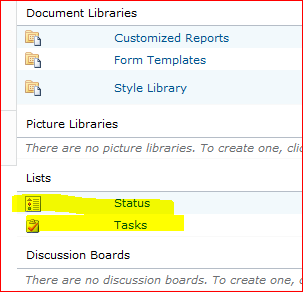 In SharePoint, different types of list can have different icons: