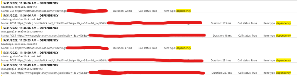 Filtering App Insights Client-Side successful dependencies